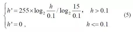在高度图中,天空、建筑物和树对应于较大的高度值,而诸如车辆和行人的较重要的对象对应于相对较小的高度值。为了突出重要目标,使用等式(5)来变换对应于每个像素的高度值,以生成高度值在0到255之间的高度图像。