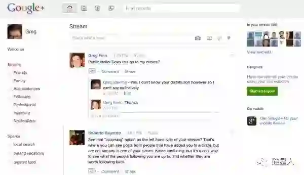 “我基本不再使用我的真名,而只需要活在Google+上的身份里。这种匿名感以及随意但又真实的感觉与 Facebook 正相反,这里的交流可能没有FB上那么频繁,但这却正是它特殊的地方。”