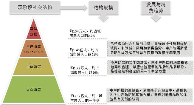 社会阶层的变化必然将中产阶层推到前台,目前这种社会结构依然是金字塔形,并没有形成发达国家“纺锤形”的模型,但中产阶层和中间阶层对社会的稳定性力量以及对于生活方式、消费趋势的引领作用已然显现无疑。