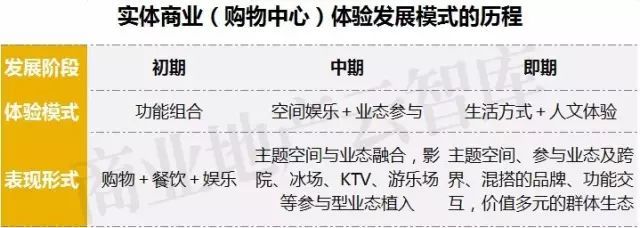 实体商业体验从最初的功能组合体验,到空间娱乐及业态参与体验,及至现阶段的生活方式与文化价值的全方位体验,商业体验反映了人性与群体需求的多元化、多层次、多维度的演变分化。