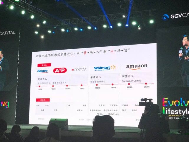 当时在沃尔玛的时代,之前有一个零售霸主叫Kmart,是沃尔玛的40倍。但是在短短的四年之内,当沃尔玛掌握了信息技术以后就已经超过了Kmart。而到了一个新的时代,我们看到亚马逊对沃尔玛的超越,是因为亚马逊提供了无线货架,互联网的技术给了亚马逊一个更好的连接用户的机会。我们说每次零售业的变革都是技术演进的结果。