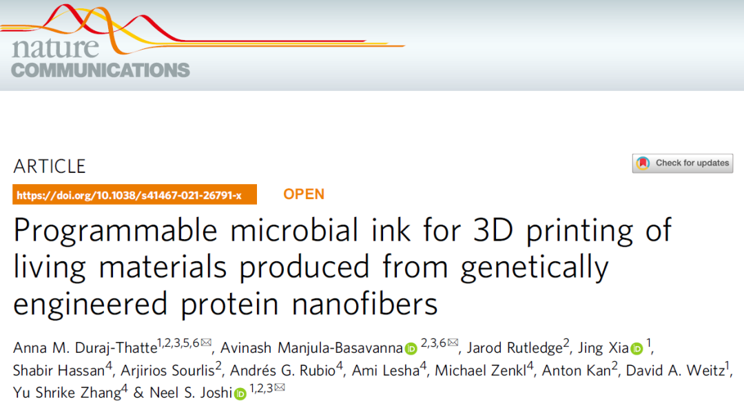 来自哈佛大学的 Anna 和 Avinash 带着研究团队着手开发一种,被他们叫做“微生物墨水(microbial ink)”的打印材料。