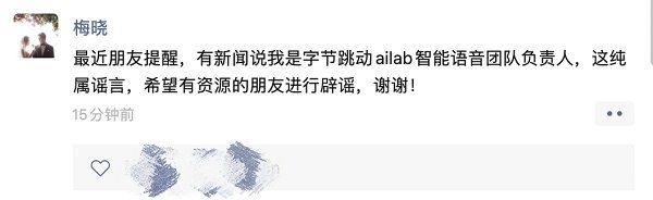 近期有关火山语音的另一个消息是有媒体报道负责人离职,马泽君表示,报道中提到的梅晓系原 AI Lab 语言学专家,主要负责语言学在语音合成技术上的应用。并非 AI Lab 的智能语音部门负责人。
