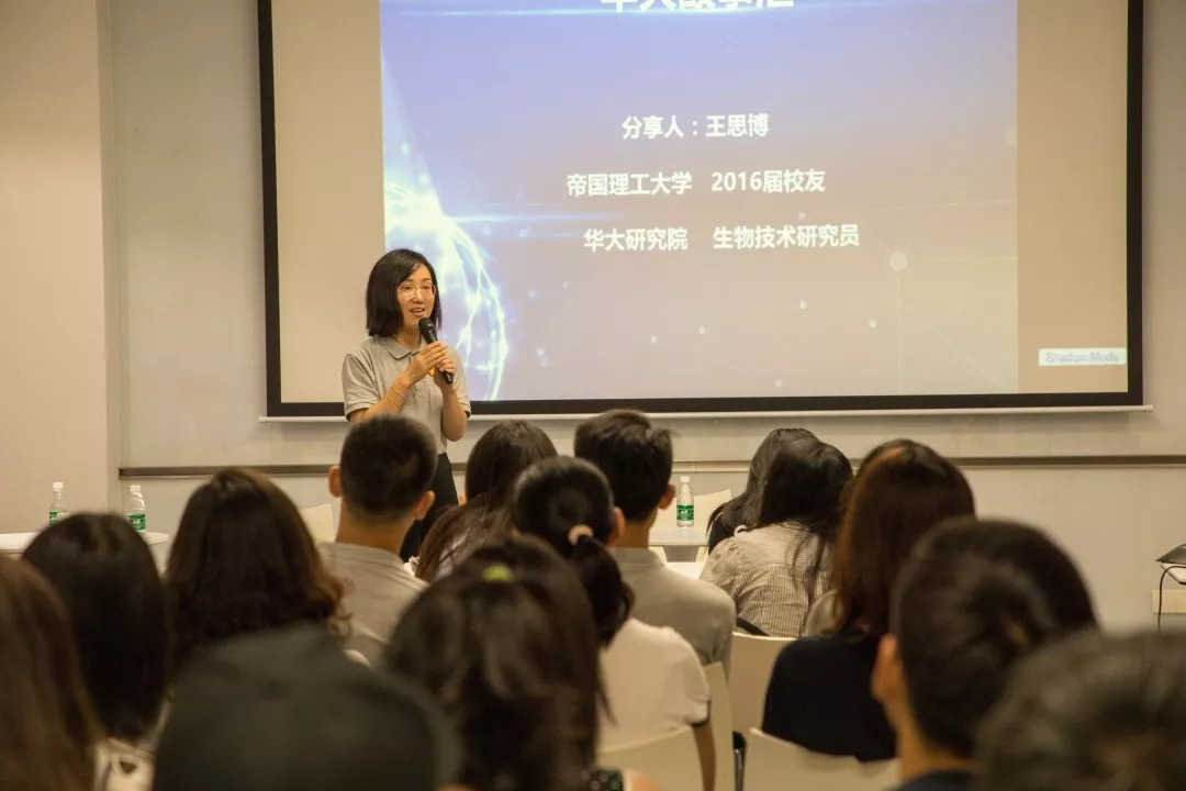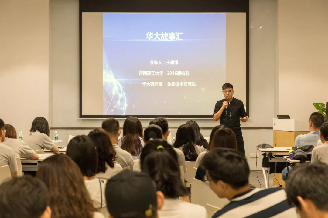 在华大工作是一种怎样的体验?任职华大的学长们更有发言权。毕业于伦敦大学在深圳华大生命科学研究院任职人力资源主管的马永超、毕业于帝国理工大学在深圳华大生命科学研究院任职生物技术研究员的王思博、毕业于中山大学在华大基因任职对外合作总监的瞿奔,一起来到现场为同学们“应援”。学长们分享了在华大工作的心得感悟,选择华大的原因以及工作上的成长、挑战和纠结。学长们以自身的经历,诙谐有趣的故事,引发了在场同学们的共鸣,掌声阵阵。有同学表示:“有前辈们加持,感觉获得了力量。”