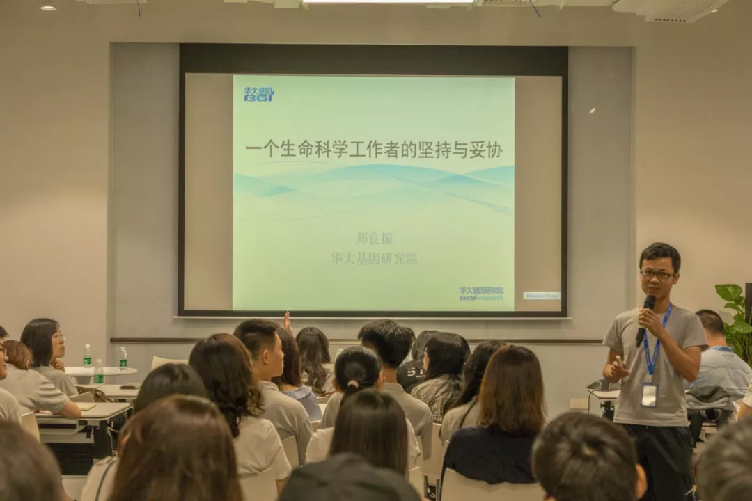活动的最后,深圳华大生命科学研究院助理研究员郑良振为同学们带来主题为 “一个生命科学工作者的坚持与妥协”的演讲,分享了自己和身边朋友的求职经历、选择华大的原因,也分享了作为一个生命科学工作者的心路历程。现场同学们反响热烈,先后就自己现阶段对就业存在的疑问、未来在华大的职业发展积极提问。郑良振表示,未来是充满了可能性的,祝愿同学们能够在自己的求职道路中收获一份心仪的工作。