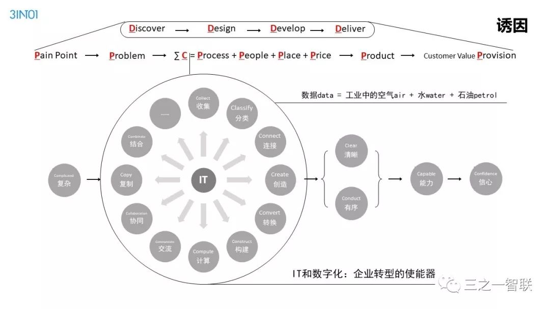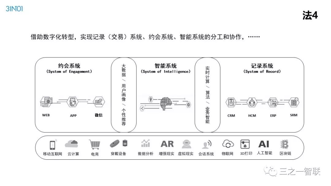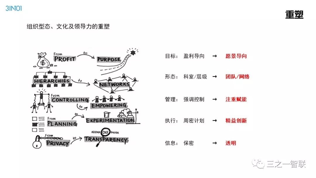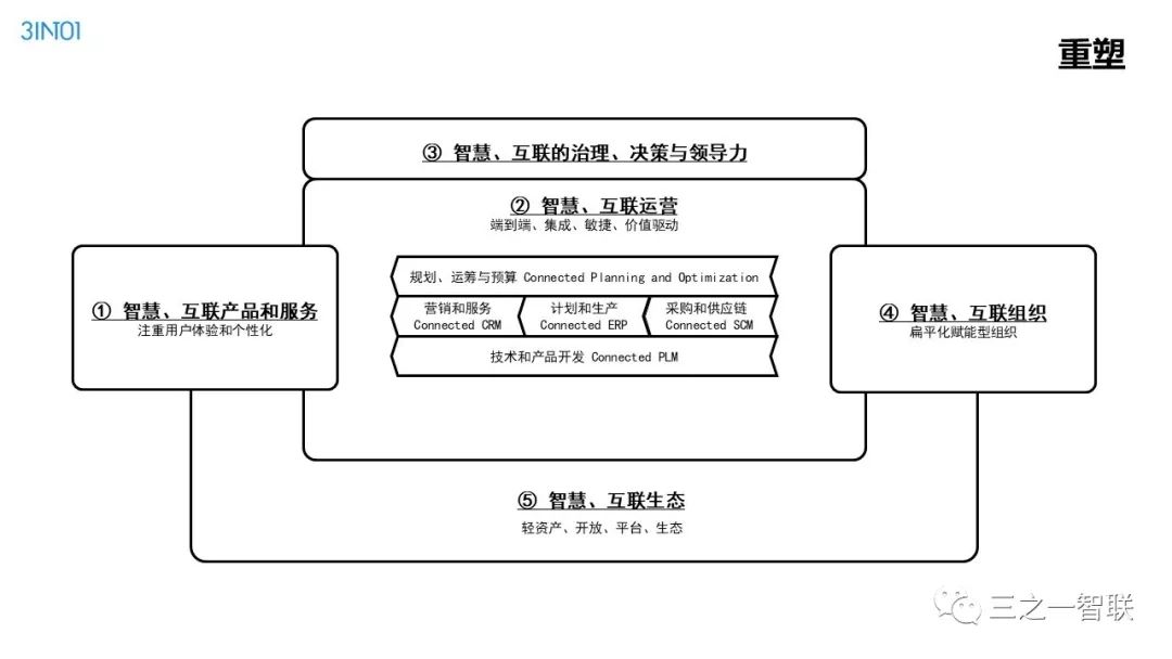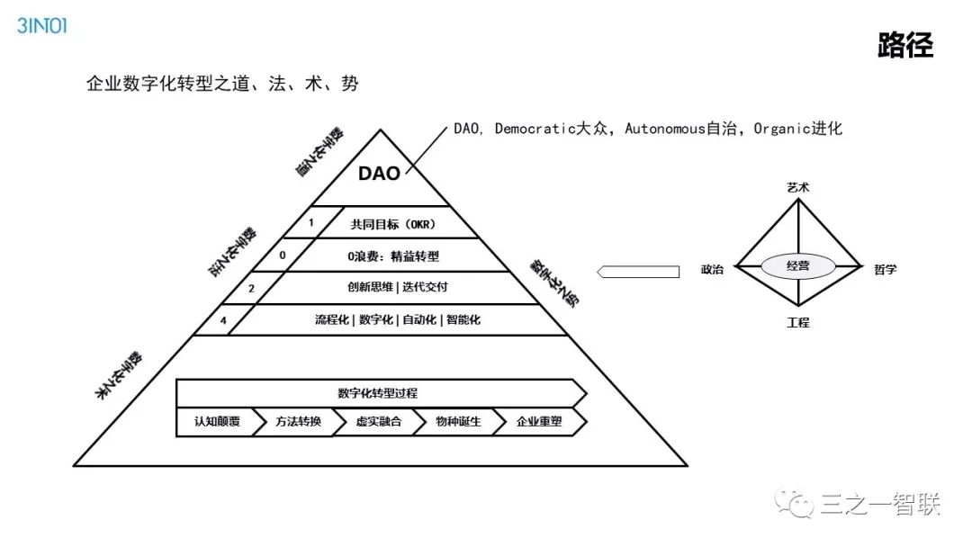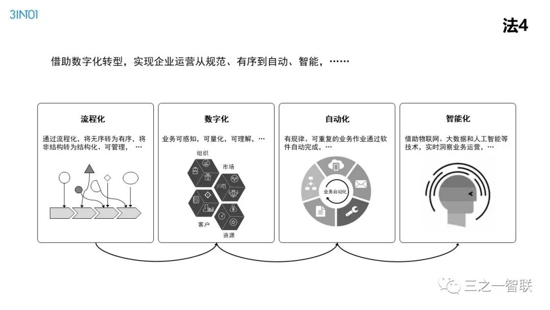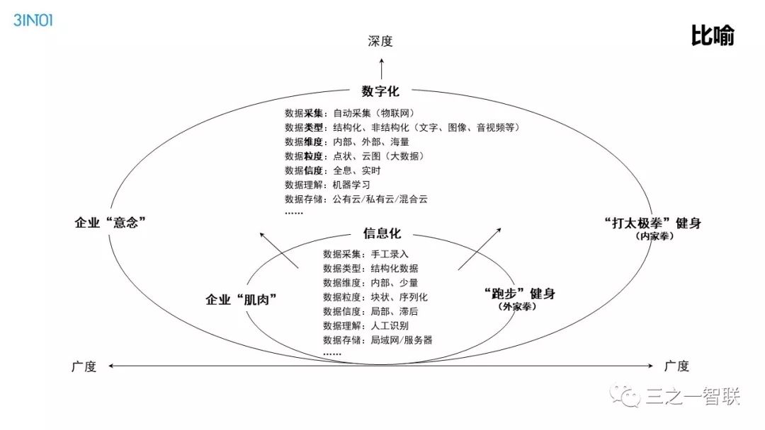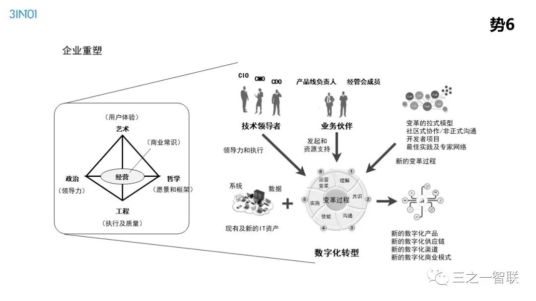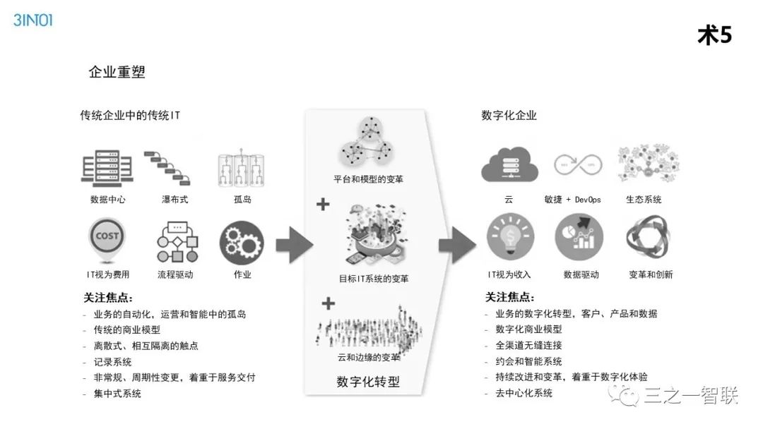 数字化转型已然成为行业热点。前几天,人民日报整版刊登关于加快信息化的文章,是国家层面对信息化价值的高度认可。作为信息化的续篇,数字化,在其目的和核心内容上都有所不同,对企业、社会和个人的影响也更加深远。在发展动能面临转型升级的今天,企业如何借助数字化进行转型,是每一个从业者非常关心的内容。本篇文章是笔者一个讲演稿的图片拼接,从背景、诱因、焦点、目的、内容、路径等方面,对企业数字化转型范式进行了诠释,现刊发出来供读者参考。在后续的文章中,笔者将以文字的形式,对其核心内容进行详细介绍。