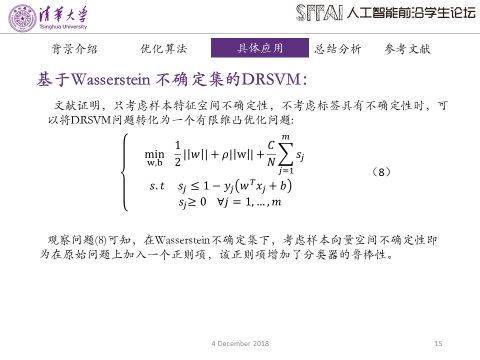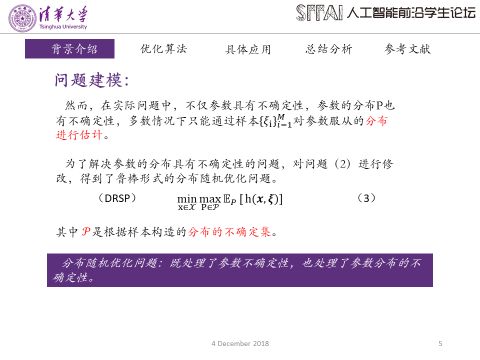 此次分享和大家介绍了鲁棒优化和分布鲁棒优化的概率,也介绍了构建分布鲁棒优化问题中不确定集的方法。重点介绍了Wasserstein不确定集以及在此不确定集下分布鲁棒优化算法的建模和应用。