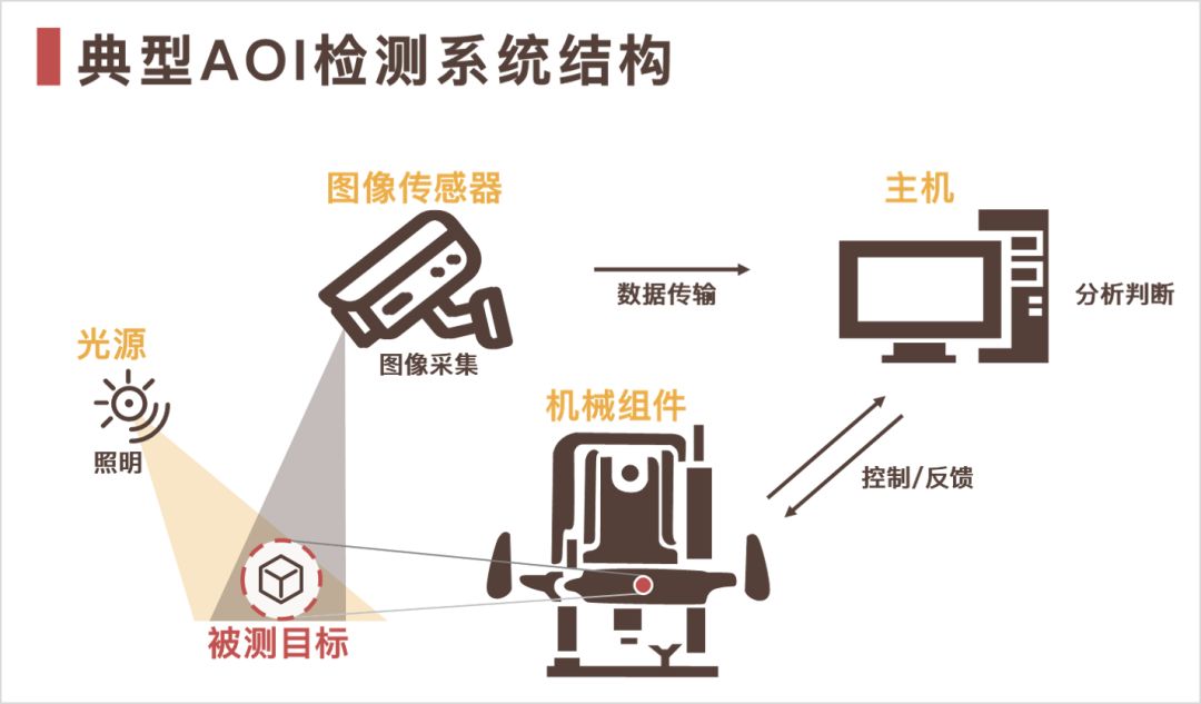 典型AOI检测系统的硬件一般包括5个部件:图像传感器、主机、光源、机械组件和机体外壳。