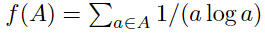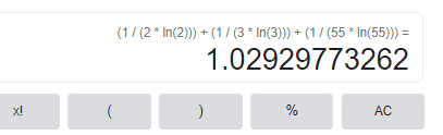 集合{2, 3, 55}的大小可以通过1/(2 log 2) + 1/(3 log 3) + 1/(55 log 55)计算得到。