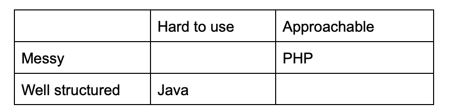 当时的情况就是,必须在两种都不够好的方案中做选择:要么是易于上手却混乱不堪,要么是结构良好却难以使用。这种困境不禁让人联想起服务器级操作系统(例如稳定却难以使用的 Unix)和客户端操作系统(例如简便易懂却经常崩溃的 Windows 和 MacOS)间的经典难题。