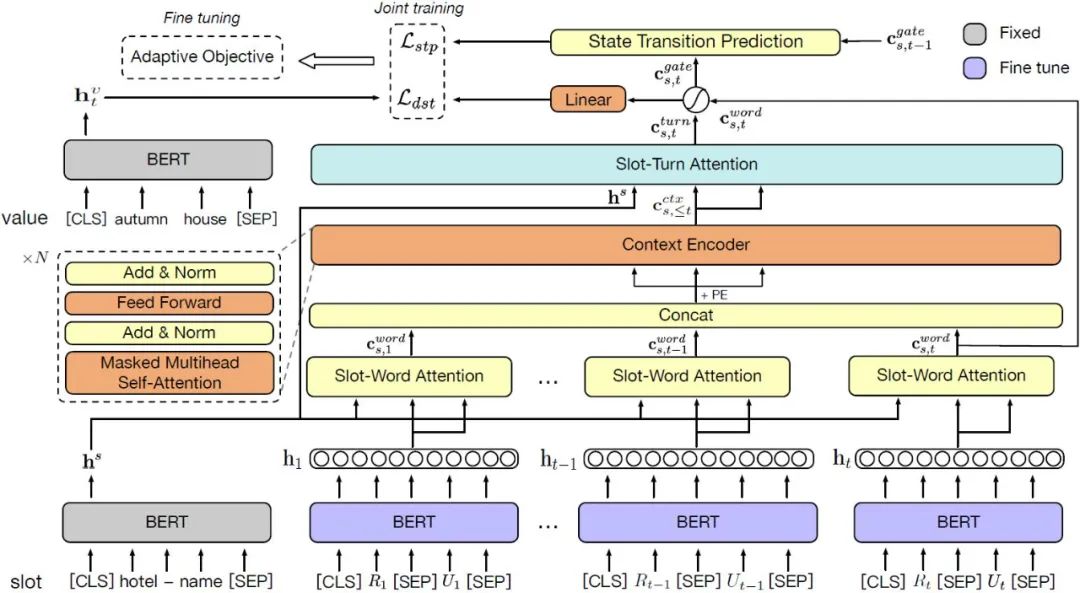 (2)在一个对话回合内,无论槽位-槽值对有多少,对话历史的特征提取只需要进行一次。