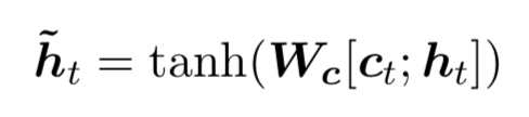 在decoder的时刻t,在利用 global attention 或 local attention 得到 context vector Ct之后,结合 ht ,对二者做 concatenate 操作,得到 attention hidden state。
