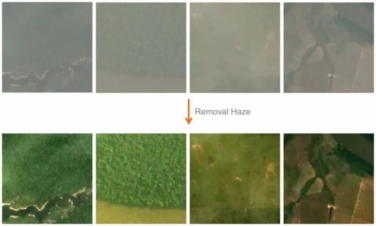 下面是在数据集中进行去雾处理的一些实例: