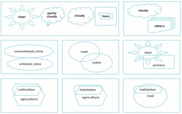 经过仔细分析后,我发现这种差异出现在一些比较有难度的图片上,人们也极易对图片中的标签产生混淆,比如一张图是该被标记为雾还是多云,道路还是积水,种植或是选择性砍伐。