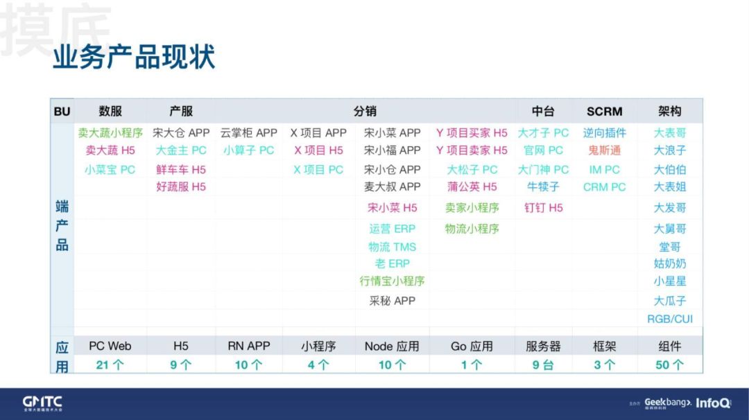 比如像 H5 的组件,我们目前才做到 20%,因为 2018 年之前,我们只有 App 和 PC 端,我们在 H5 上没有任何的需求,但是 2019 年开始,我们就开始拥抱微信、社群生态,所以这个时候微信、H5,以及买家、卖家、商城各种全起来了,越是这种时候越要鼓励一些同学去做基建的工作。