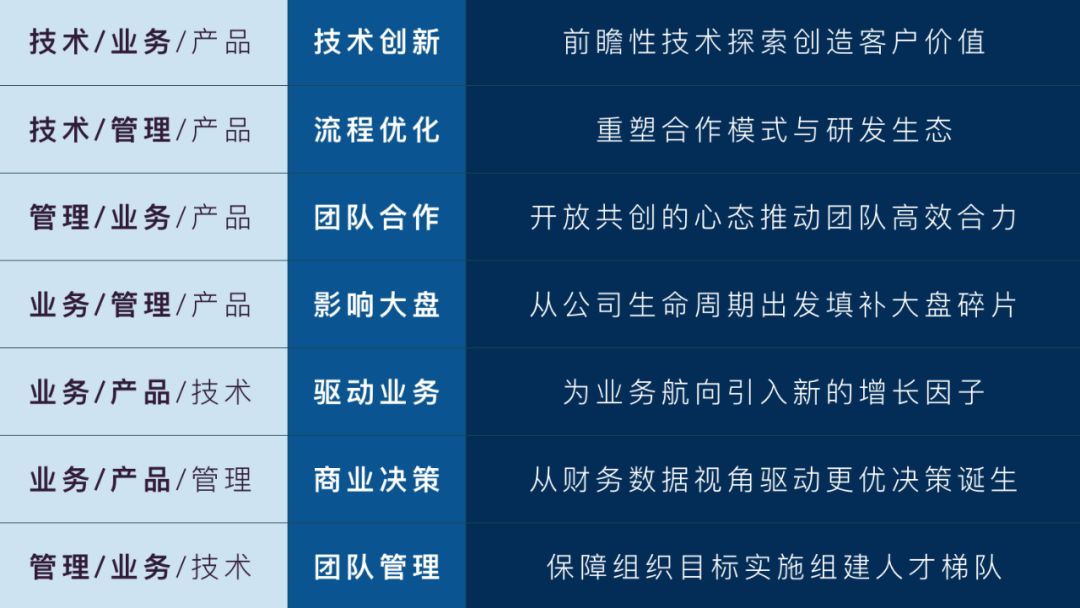 除了基础技能外,要把管理者的价值打足,就一定需要有产品、业务包括管理的综合能力: