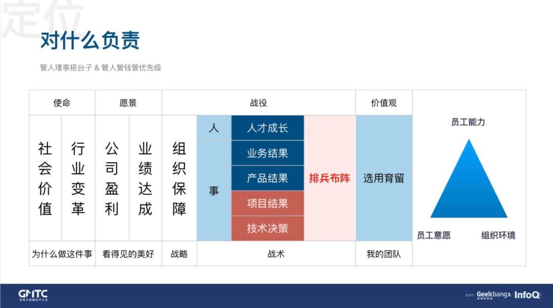 无论是技术决策、项目结果还是产品和业务结果,这都是管理者要负责的事,在整个过程里面,我们是希望团队越做越大,人越来越强。