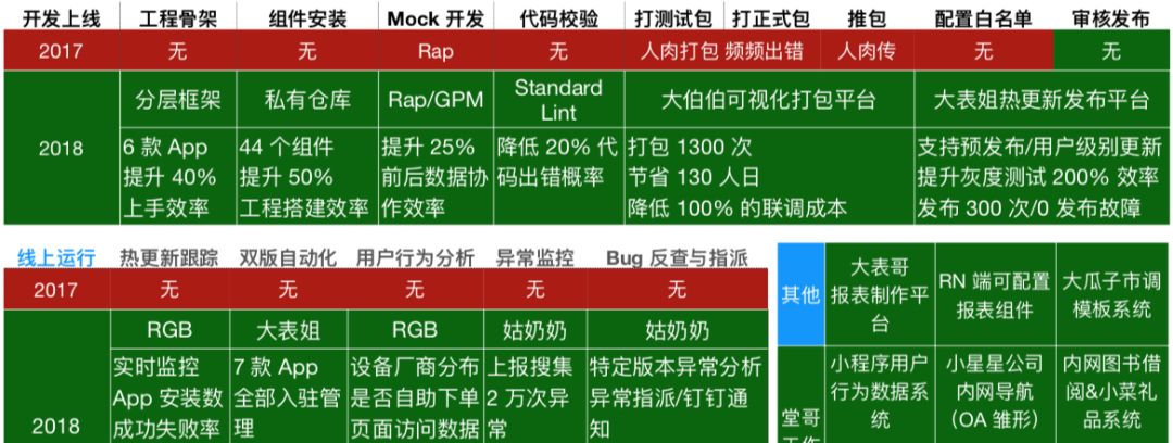 我就是通过这种方式去诊断团队中的问题,只有把这问题诊断的足够清楚,才能对症下药,比如针对工具基建弱这一点,我们从 0 到 1 做了一些工具,并且有数据有案例有评估标准。(如下图)