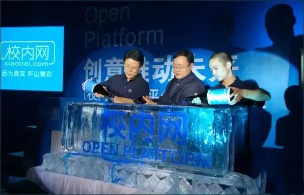 图:陈一舟(左二)与许朝军(右一)在校内网发布会上