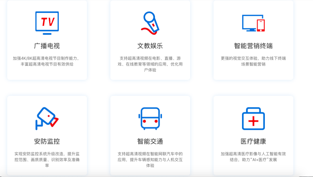 在超高清视频方面,随着5G加快商用,8K超高清视频有望成为5G时代第一个实现万亿级规模的市场。SMore Media解决方案基于思谋团队利用AI和视觉建模形成的高清图像视频处理、增强、理解的核心技术,致力于解决5G+8K全产业链流程中的“卡脖子”核心路段。此外,思谋还在研发用于8K超高清视频画质增强与理解的AI处理器,为客户提供软硬一体化解决方案,为电视电影、文教娱乐、智能终端营销、智能交通、医疗健康等行业提供生产力工具。