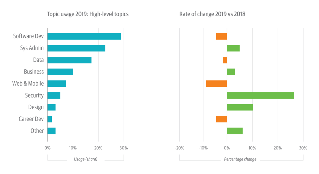 O’Reilly 在线学习平台上最新的使用率数据显示以下五个技术领域的发展趋势: