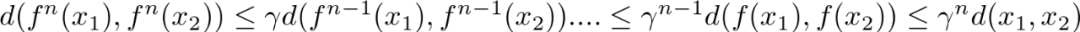 令(X, d)是一个完备的度量空间,函数f: X->X是一个压缩映射,则f具有唯一一个不动点 x*∈ X (即,f(x *)=x *) ,使得序列 f(f(f(…f(x))))收敛至x *。