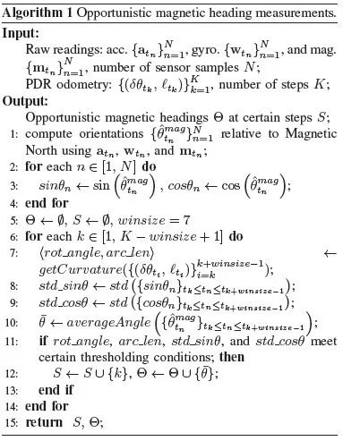 A. PDR:在本文的方案中,PDR获得的姿态信息被大量用于构建GraphSLAM前端,因为它们提供信息性运动模式以辅助磁性序列分割,机会性磁航向测量和姿态图生成的运动约束。