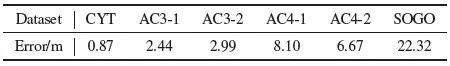1)具有验证的闭环检测:使用最终优化的轨迹作为基础事实,对于每个数据集的每个数据集的真阳性(TPs)的假阳性(FPs)的总数,在表1中总结了关于环路正确性的统计。