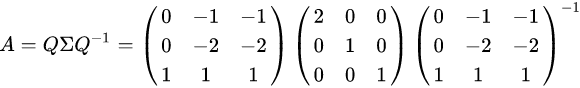其中,Q是矩阵A的特征向量组成的矩阵,则是一个对角阵,对角线上的元素就是特征值。
