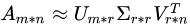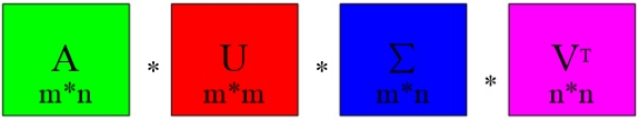 其中r是一个远远小于m和n的数,右边的三个矩阵相乘的结果将会使一个接近A的矩阵。如果r越接近于n,则相乘的结果越接近于A。如果r的取值远远小于n,从计算机内存的角度来说,右边三个矩阵的存储内存要远远小于矩阵A的。所以在奇异值分解中r的取值很重要,就是在计算精度和时间空间之间做选择。