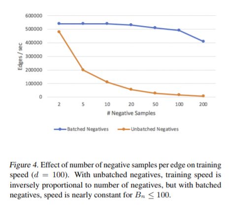大多数图嵌入方法都使用负采样是跟内存(或网络)高度绑定,因为它需要 B*Bn*d 浮点数次数的内存访问,来执行复杂度为 O(B*Bn*d) 的浮点操作。事实上,Wu 等人报告说,训练速度”接近于逆线性函数 (负样本数量)。