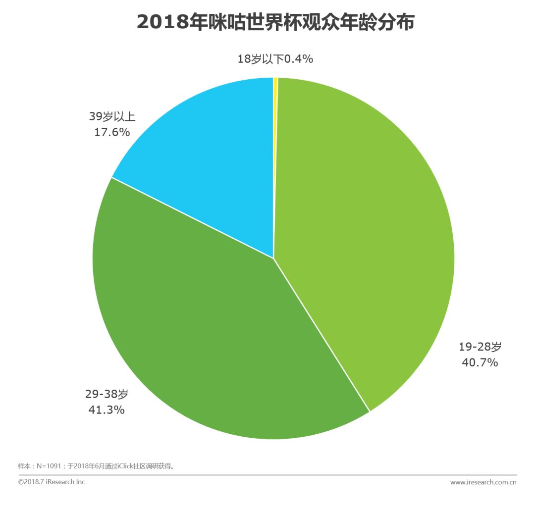 本届世界杯的观众中,观看世界杯赛事的人群年龄在不断地分散化,30-40岁的观众数量占比达到41.3%。而随着年龄的增长,90后们也逐渐体会到了足球这项运动的魅力,加入了看球大军。在全部观赛人群当中90后占总体的40.7%。