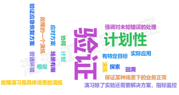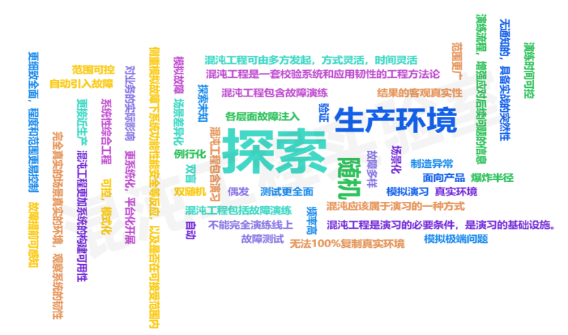 调查数据显示,超过半数被访用户对混沌工程和演习的概念分辨不清,约 1/4 的用户认为两者没有区别,仅有约 1/5 的用户能明确表述出两者的区别。对被访用户的反馈信息加工、进行词频分析后,可以发现混沌工程更偏向于在生产环境中执行探索性测试,具有随机性,以发现系统中的隐藏问题;演习更偏向于有计划性地验证某一具体猜想。
