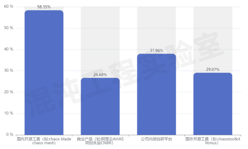 1)服务需求侧(甲方)更倾向于采用商业产品为辅助:33.04% 的服务需求侧倾向于采用成熟的商业产品作为辅助,以实现混沌工程快速落地、避开实施陷阱;其次才会考虑自研平台。