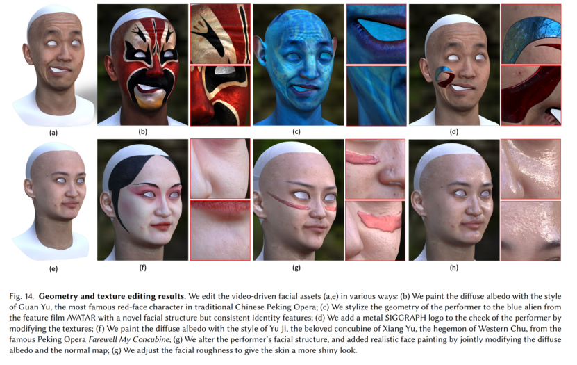 这项工作已经被计算机图形学顶会 SIGGRAPH Asia 2022 接收为 Technical Paper - Journal Track 并受邀作报告分享。据研究人员介绍,这项技术不仅能够生产出与现有渲染引擎兼容的面部几何模型和多层材质贴图,还能让任何人凭借手机进行轻量级面部捕捉,实时驱动高质量的面部资产,
