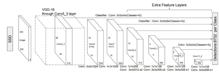 Faster R-CNN先通过RPN网络得到候选框,然后再进行分类与回归,而SSD可以一步到位完成检测。相比,SSD有两大改变: