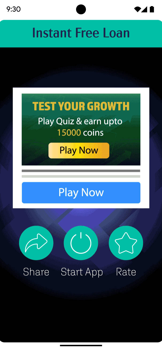 △ 违规示例 2: 在首个页面中,系统引导用户点击 "Play",因为这是应用页面上唯一一个可用的按钮。当用户点击该按钮后,系统展示了一个插页式广告。用户在关闭该广告后点击 "Launch",因为这是页面上唯一一个可互动的按钮,结果系统弹出了另一个插页式广告