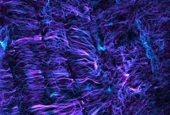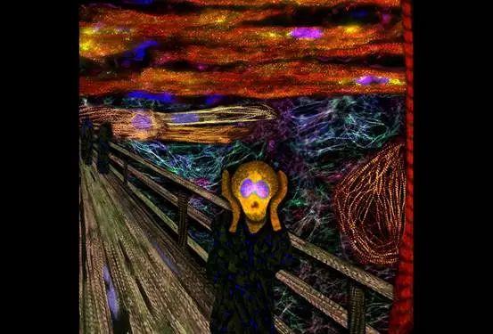 这种免疫荧光标记的心肌细胞来自不同的来源(大鼠、人类和人类干细胞来源),反映了我们研究的美丽和复杂性,其模仿了爱德华•蒙克(Edvard Munch)的画作《呐喊》(the Scream)。精确排列的肌蛋白说明了它们在心肌细胞收缩和肌病中肌节突变的有害功能后果中的重要作用。这张图片在生物物理学会2019年科学艺术图像大赛中获得第二名。