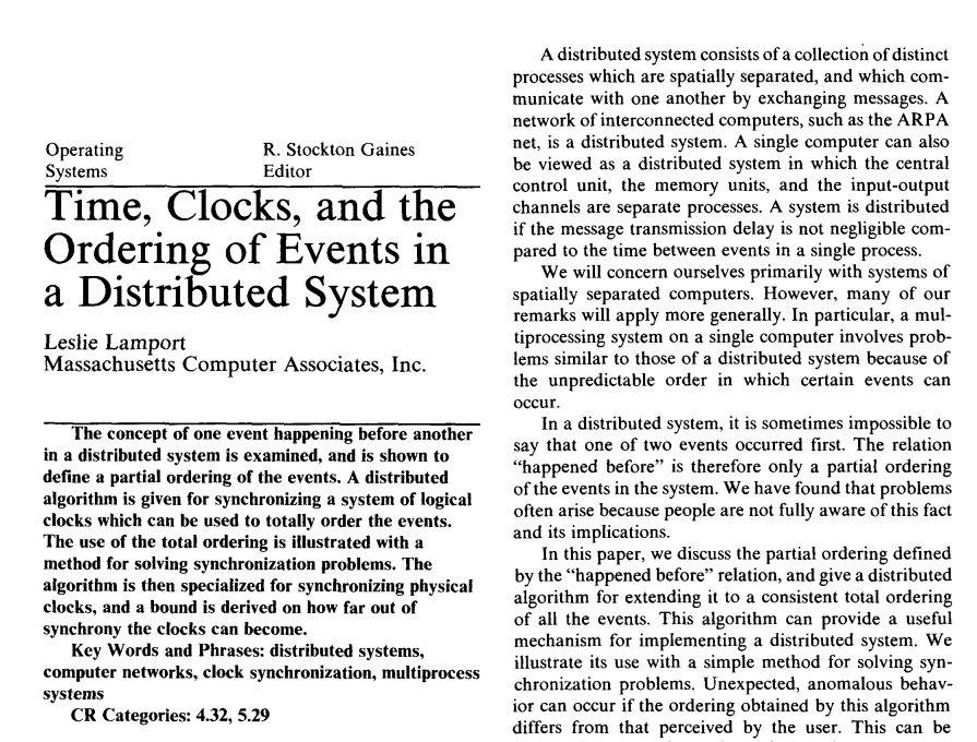 在1978年的一篇开创性的论文中,Lamport引入了「