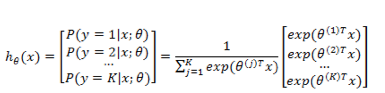 上面介绍的逻辑回归是一个二值化问题,y 的取值只有 0 和 1 ,如果我们的预测任务 ,那么我们需要 softmax regression 来进行建模和预测。简单一些理解,可以认为 softmax regression 是 K 个 logistic regression 的归一化: