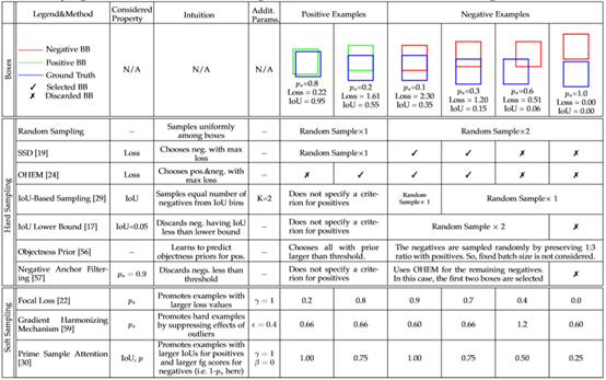 我们可以将背景类不平衡的解决方案分为四类:(i)硬采样方法,(ii)软采样方法,(iii)无采样方法和(iv)生成方法,详细方法汇总如下图所示:
