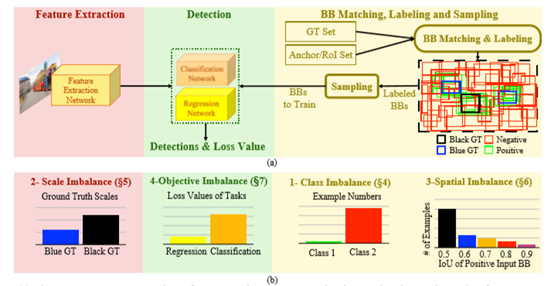 在前景背景类不平衡的情况下,过表示类和欠表示类分别是背景类和前景类。这种类型的问题是不可避免的,因为大多数边界框被边界框匹配和标记模块标记为背景(即负)类。前景背景不平衡问题发生在训练期间,并且不依赖于数据集中每个类的示例数,因为它们不包括背景上的任何注释。