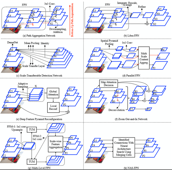 针对FPN结构中的特征层次,有几种方法可以解决FPN体系结构中的不平衡问题,从设计改进的自顶向下通道连接到完全新颖的体系结构。论文考虑了使用新的架构来缓解特征级不平衡问题的方法,根据它们作为基础的用途将它们分为两类:使用金字塔或backbone特征作为bias。