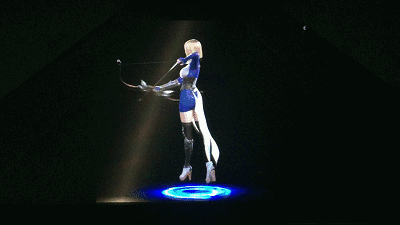 ↑ 洛琳女神将与战友合力狩猎,在战斗中汲取强大的猎魂为己所用,经历了一场场激动人心的史诗冒险,海康威视全息显示展示了她英气十足的身姿。