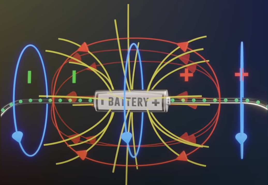 第三,暂态电流导致电荷重新分布,然后才产生稳定的电流和电磁场;在这之后,电源的能量才真正到达灯泡。