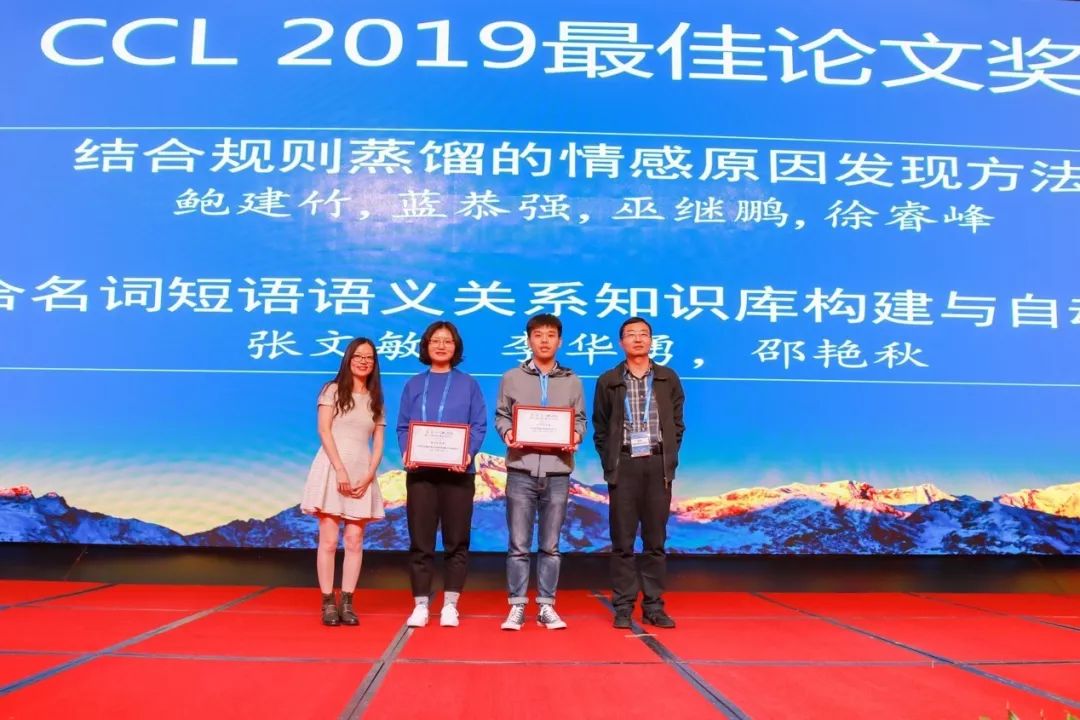 孙乐和季姮老师为CCL 2019最佳中文论文奖作者颁奖