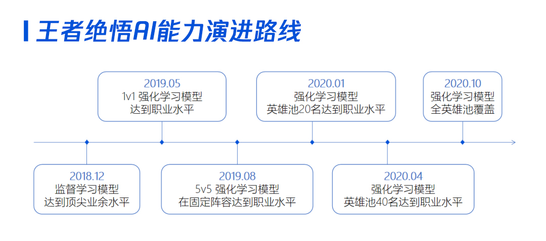 2020年,“王者绝悟”通过课程学习方式,学会了更多英雄玩法;5月,它用40个英雄池首次接受玩家们的挑战。