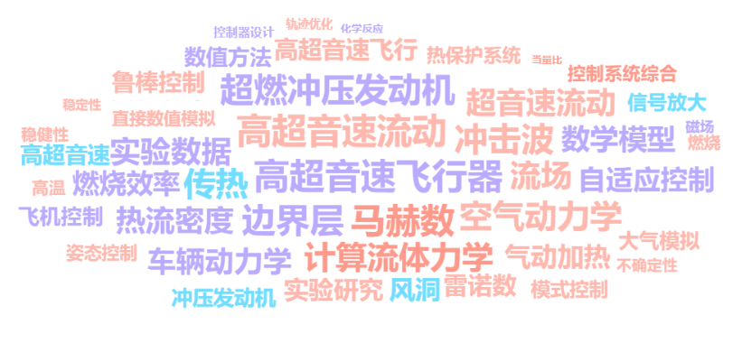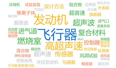 ,从 AMiner 数据库中查找出高超音速相关科研论文,生成技术热点词云图(如图 3 所示)。