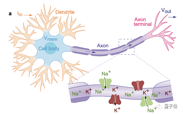 而人造神经元则通过向输入端注入电流产生尖峰,实现一种类似的动作电位的传导,还能调节电解质的离子浓度控制尖峰频率。