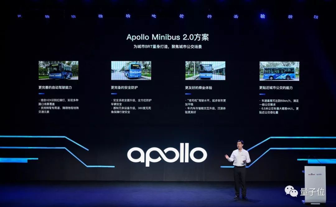 Apollo Minibus 2.0方案,王京傲在发布会上说,Minibus 2.0为城市BRT量身打造,比普通公交车行驶更平稳,实现最高时速60公里每小时,载客44人,金龙客车、宇通客车等企业都是该方案的客户。